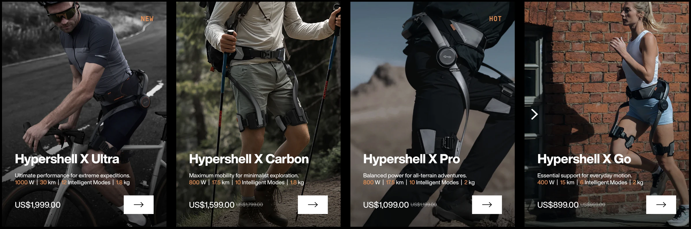 图注:极壳已发布 4 款消费级外骨骼产品。